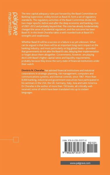 The banking industry extensively lobbied against Basel III and governments have been keen to delay its full implementation. Chorafas' latest book takes a well-rounded approach on Basel III's strengths and weaknesses and explains how, without deep restructuring of the global banking industry, (like Basel II) Basel III will fail.