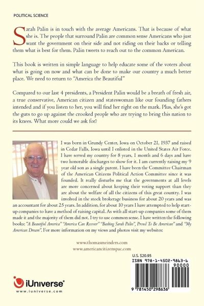 Sarah Palin is in touch with the average Americans. That is because of what she is. The people that surround Palin are common sense Americans who just want the government on their side and not riding on their backs or telling them what is best for them. Palin tweets to reach out to the common American. This book is written in simple language to help educate some of the voters about what is going on now and what can be done to make our country a much better place. We need to return to "America the Beautiful" Compared to our last 4 presidents, a President Palin would be a breath of fresh air, a true conservative, American citizen and stateswoman like our founding fathers intended and if you listen to her, you will fi nd her right on the mark. Plus, she's got the guts to go up against the crooked people who are trying to bring this nation to its knees. What more could we ask for?