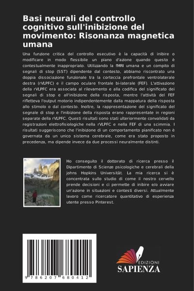 Una funzione critica del controllo esecutivo è la capacità di inibire o modificare in modo flessibile un piano d'azione quando questo è contestualmente inappropriato. Utilizzando la fMRI umana e un compito di segnali di stop (SST) dipendente dal contesto, abbiamo riscontrato una doppia dissociazione funzionale tra la corteccia prefrontale ventrolaterale destra (rVLPFC) e il campo oculare frontale bi-laterale (FEF). L'attivazione della rVLPFC era associata al rilevamento e alla codifica del significato dei segnali di stop e all'inibizione della risposta, mentre l'attività del FEF rifletteva l'output motorio indipendentemente dalla mappatura della risposta allo stimolo o dal contesto. Inoltre, la rappresentazione del significato del segnale di stop e l'inibizione della risposta erano rappresentate in regioni separate della rVLPFC. Questi risultati sono stati ulteriormente convalidati da registrazioni elettrofisiologiche nella rVLPFC e nella FEF di una scimmia. I risultati suggeriscono che l'inibizione di un comportamento pianificato non è governata da un unico sistema cerebrale, come era stato proposto in precedenza, ma dipende invece da due processi neuralmente distinti.