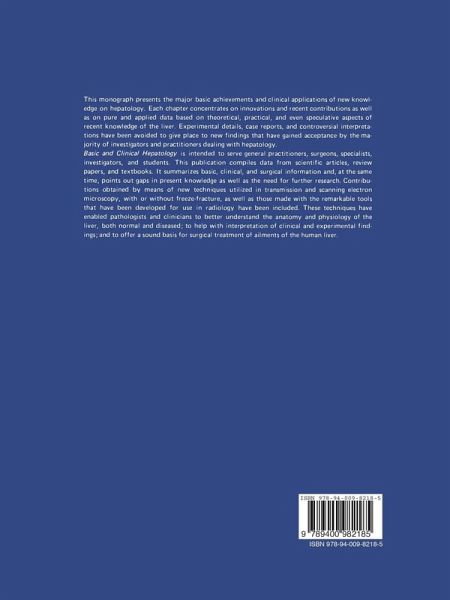 The liver has been an organ of mystery for centuries. Slowly but surely its secrets have been disclosed by both basic research and clinically oriented investigators whose current concepts have been brought together in this book by authors from five different countries. Three major groups with many subgroups have made inroads into our better understanding of the liver. The first of these comprises the basic scientists whose study of single hepatocytes may provide the key to comprehension of mechanisms that will lead eventually to improvement in the morbidity and mortality associated with a variety of hepatic disorders. The second group has been concerned with studies in depth of the liver's response to a variety of hormones, drugs, viruses, and infections. Both early and late results are their concern in the diagnosis and treatment of the individual patient. A third group comprises the surgeons who have become increasingly aggressive in the removal of one or more segments of the liver. They have increased the scope of hepatic resection as a result of a better understanding gained from studies of various segments of the liver. They have accepted the term, segmentectomy, and have extended feasible procedures to include trisegmentectomy. Indeed, trans plantation of the liver has been successfully accomplished.