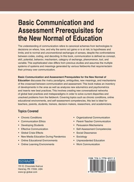 The understanding of communication refers to canonical schemes from technologies to decisions on where, how, and why the semic act gains or is at risk; to hypotheses and limits; and to normal and unconventional exchanges of senses, despite the confrontations between codes, coding, and decoding. In this book, communication is defined as concept, skill, potential, behavior, mechanism, category of exchange, phenomenon, tool, and variable. This sophisticated view differs from previous studies and assumes the multiple systems of systems and meanings generated by various fieldworks that require/reclaim their primacy over communication ¿Basic Communication and Assessment Prerequisites for the New Normal of Education discusses the rivalry paradigms, ambiguities, new meanings, and mechanisms of the crossroad between communication and assessment. This book makes an inventory of developments in the area as well as analyzes new edumetrics and psychometrics and inserts new best practices. This involves creating new conversational networks of global best practices and metaparadigms in order to solve current disparities and unsolved problems from the fieldwork. Covering topics such as chronic conditions, online educational environments, and self-assessment competencies, this text is ideal for teachers, parents, students, trainers, decision makers, researchers, and academicians.