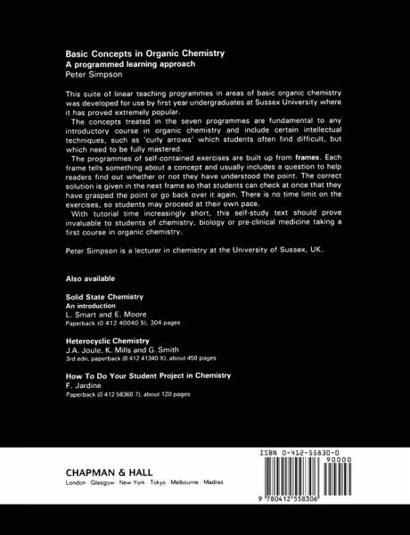 This suite of linear teaching programmes in areas of basic organic chemistry was developed for use by first year undergraduates at Sussex University where it has proved extremely popular. The concepts treated in the seven programmes are fundamental to any introductory course in organic chemistry and include certain intellectual techniques, such as curly arrows which students often find difficult, but which need to be fully mastered. With tutorial time increasingly short, this self-study text should prove invaluable to students of chemistry, biology or pre-clinical medicine taking a first course in organic chemistry.