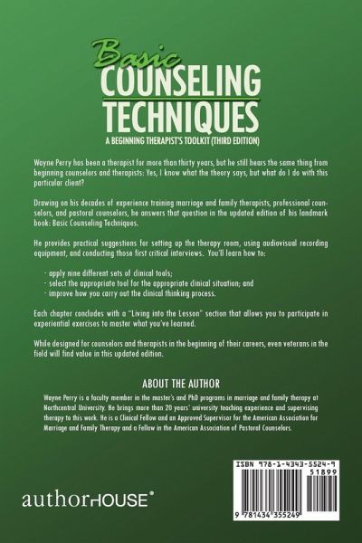 Wayne Perry has been a therapist for more than thirty years, but he still hears the same thing from beginning counselors and therapists: Yes, I know what the theory says, but what do I do with this particular client? Drawing on his decades of experience training marriage and family therapists, professional counselors, and pastoral counselors, he answers that question in the updated edition of his landmark book: Basic Counseling Techniques. He provides practical suggestions for setting up the therapy room, using audiovisual recording equipment, and conducting those first critical interviews. You'll learn how to: apply nine different sets of clinical tools; select the appropriate tool for the appropriate clinical situation; and improve how you carry out the clinical thinking process. Each chapter concludes with a "Living into the Lesson" section that allows you to participate in experiential exercises to master what you've learned. While designed for counselors and therapists in the beginning of their careers, even veterans in the field will find value in this updated edition.