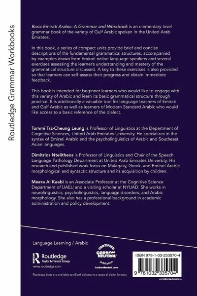 This book is intended for beginner learners who would like to engage with this variety of Arabic and learn its basic grammatical structure through practice. It is additionally a valuable tool for language teachers of Emirati and Gulf Arabic as well as learners of Modern Standard Arabic who would like access to a basic reference of the dialect.