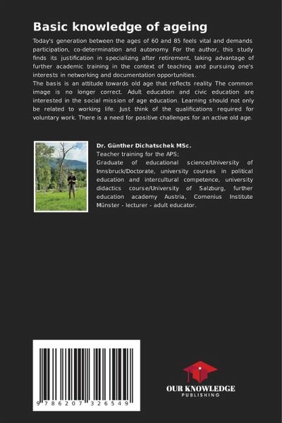 Today's generation between the ages of 60 and 85 feels vital and demands participation, co-determination and autonomy. For the author, this study finds its justification in specializing after retirement, taking advantage of further academic training in the context of teaching and pursuing one's interests in networking and documentation opportunities. The basis is an attitude towards old age that reflects reality. The common image is no longer correct. Adult education and civic education are interested in the social mission of age education. Learning should not only be related to working life. Just think of the qualifications required for voluntary work. There is a need for positive challenges for an active old age.
