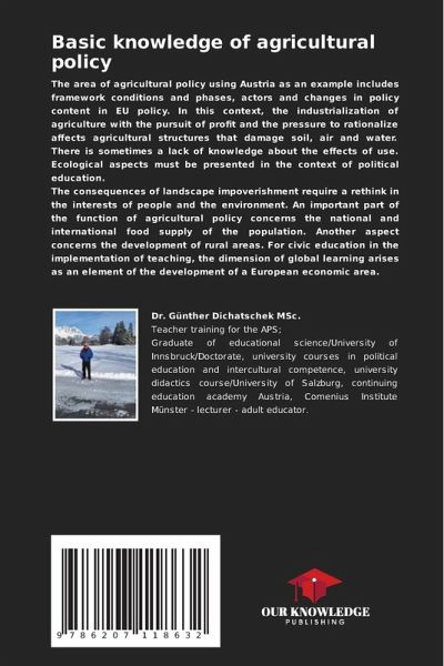 The area of agricultural policy using Austria as an example includes framework conditions and phases, actors and changes in policy content in EU policy. In this context, the industrialization of agriculture with the pursuit of profit and the pressure to rationalize affects agricultural structures that damage soil, air and water. There is sometimes a lack of knowledge about the effects of use. Ecological aspects must be presented in the context of political education. The consequences of landscape impoverishment require a rethink in the interests of people and the environment. An important part of the function of agricultural policy concerns the national and international food supply of the population. Another aspect concerns the development of rural areas. For civic education in the implementation of teaching, the dimension of global learning arises as an element of the development of a European economic area.
