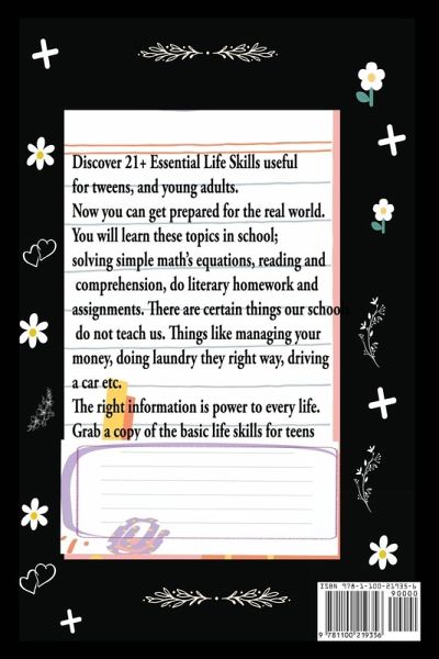 Life skills book For teens who love to be independent and useful to themselves and their family! - Discover 21+ Essential Life Skills useful for tweens, and young adults. Now you can get prepared for the real world. You will learn these topics in school; solving simple math's equations, reading and comprehension, do literary homework and assignments. There are certain things our schools do not teach us. Things like managing your money, doing laundry they right way, driving a car etc. The right information is power to every life. In this book - basic life skills for teens, you will learn practical skills a that are useful in everyday life. These actionable skills are what you will meet in real life when you have finished your schooling. That's what this book is all about. It's a road map. When you get a copy of the basic life skill for teens book. You will find out that the author has taken his time to simplify every step. This book has different chapters covering the basic and important Lifeskills for teens . there are exercises and notes to take at the end of the chapter topics. Going through the basic Lifeskills for teens will teach you how to cook a a delicious meal, budgeting and investing money wisely, saving for emergencies. More benefits · We believe that your growing-up stages, should be complete and pleasurable. You will be glad that you held a copy of the basic Lifeskills for teens. It's an easy to read guide when every teen would love. · Now is the best time to be the best version of yourself and reach every goal you aim to reach in life. If you are a parent, your teen will appreciate a copy of the basic Lifeskills. Give a teen as a birthday present. Help them become independent and purposeful. ORDER YOUR COPIES NOW
