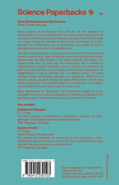 Some teachers of biochemistry think it positively beneficial for students to struggle with difficult mathematics. I do not number myself among these people, although I have derived much personal pleasure from the study of mathematics and from applying it to problems that interest me in biochemistry. On the contrary, I think that students choose courses in biochemistry out of interest in biochemistry and that they should not be encumbered with more mathematics than is absolutely required for a proper understanding of biochemistry. This of course includes physical chemistry, because a biochemist ignorant of physical chemistry is no biochemist. I have been guided by these beliefs in writing this book. I have laid heavy emphasis on those topics, such as the use of logarithms, that play an important role in biochemistry and often cause problems in teaching; I have ignored others, such as trigonometry, that one can manage without. The proper treatment of statistics has been more difficult to decide. Although it clearly plays an important part in all experi mental sciences, it is usually preferable to treat it as a subject in its own right and not to try to incorporate it into a course of elementary mathematics. In this book, therefore, I have used a few examples from statistics to illustrate more general points, but I have not discussed it for its own sake.