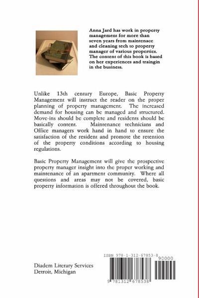 Basic Property Management is a educational training manual on how to effectively run a property. Where this book may not answer all your questions, it will help with resolving most of your concerns and showing you how to eliminate stress from your profession.