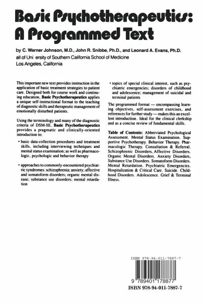 This book provides instruction in applying basic treatment strategies to patient care. Emphasis is placed on teachi. ng diagnostic skills, and especially, the therapeutic management of emotionally disturbed patients. This book is intended as a companion text to Basic Psychopathology: A Programmed Text, whi. ch focuses more on teaching the description and observational skills for diagnosing common psychopathologic syn dromes. Basic Psychotherapeutics gives pragmatic suggestions for treating a variety of psychopathologic disorders, many of which are newly classi fied in the Diagnostic Statistical Manual - III (DSM-II1) published by The American Psychiatric Association. We have adopted the terminology and many, but not all, of the diagnosti. c criteria used in DSM-III. The treatment recommendations proposed are eclectic in nature and the infor mation presented is non-theoretical and patient centered. Basic Psychotherapeutics is divided into three parts. The first re views basic datacollection procedures and treatment skills; it includes chapters on interviewing, the mental status examination and pharmaco logic, psychologic and behavioral therapy. The next section includes chapters on commonly encountered psychiatric syndromes such as schiz ophrenic, affective and anxiety disorders. The final chapters are pre sentations of special clinical interest, such as the management of suicidal patients, psychiatric emergencies, treating the dying patient and his family, and others.