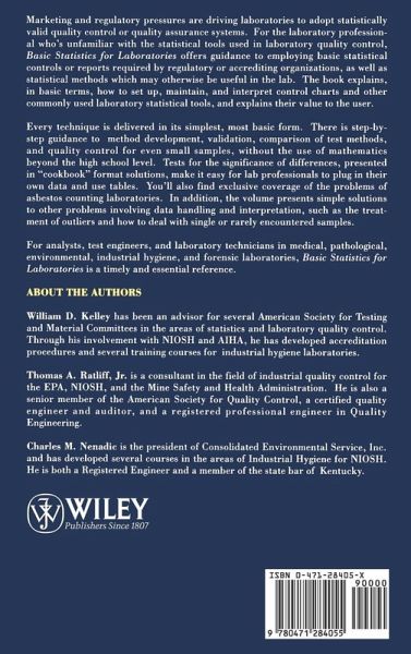 Marketing and regulatory pressures are driving laboratories to adopt statistically valid quality control or quality assurance systems. For the laboratory professional who's unfamiliar with the statistical tools used in laboratory quality control, Basic Statistics for Laboratories offers guidance to employing basic statistical controls or reports required by regulatory or accrediting organizations, as well as statistical methods which may otherwise be useful in the lab. The book explains, in basic terms, how to set up, maintain, and interpret control charts and other commonly used laboratory statistical tools, and explains their value to the user. Every technique is delivered in its simplest, most basic form. There is step-by-step guidance to method development, validation, comparison of test methods, and quality control for even small samples, without the use of mathematics beyond the high school level. Tests for the significance of differences, presented in "cookbook" format solutions, make it easy for lab professionals to plug in their own data and use tables. You'll also find exclusive coverage of the problems of asbestos counting laboratories. In addition, the volume presents simple solutions to other problems involving data handling and interpretation, such as the treatment of outliers and how to deal with single or rarely encountered samples. For analysts, test engineers, and laboratory technicians in medical, pathological, environmental, industrial hygiene, and forensic laboratories, Basic Statistics for Laboratories is a timely and essential reference.