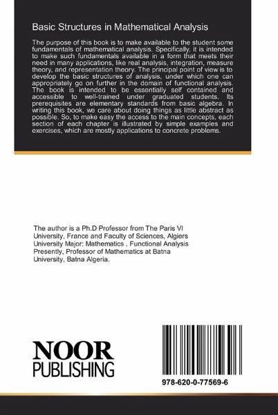 The purpose of this book is to make available to the student some fundamentals of mathematical analysis. Specifically, it is intended to make such fundamentals available in a form that meets their need in many applications, like real analysis, integration, measure theory, and representation theory. The principal point of view is to develop the basic structures of analysis, under which one can appropriately go on further in the domain of functional analysis. The book is intended to be essentially self contained and accessible to well-trained under graduated students. Its prerequisites are elementary standards from basic algebra. In writing this book, we care about doing things as little abstract as possible. So, to make easy the access to the main concepts, each section of each chapter is illustrated by simple examples and exercises, which are mostly applications to concrete problems.