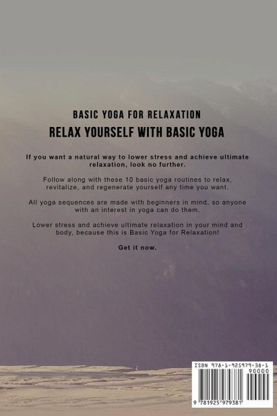 Relax Yourself with Basic Yoga Follow along with these 10 basic yoga routines to relax, revitalize, and regenerate yourself any time you want. All yoga sequences are made with beginners in mind, so anyone with an interest in yoga can do them. Lower stress and achieve ultimate relaxation in your mind and body, because this is Basic Yoga for Relaxation. Get it now. Relaxing with Yoga Made EasySpecifically designed basic yoga sequences to lower stress and relax your entire being Yoga breathing techniques Important safety information about when to avoid certain yoga poses How to do yoga nidra Over 65 basic yoga poses so you can create your own routines ...and more! Not Only Yoga for Stress Relief and Relaxation Achieve total relaxation and get all the other benefits of yoga.Increase strength Lose weight Reduce stress Calm the mind Revitalize yourself Sleep better Improve flexibility Be happier ... just to name a few. Limited Time Only... Get your copy of Basic Yoga for Relaxation today and you will also receive:Free SF Nonfiction Books new releases Exclusive discount offers Downloadable sample chapters Bonus content ... and more! Eliminate your stress the natural way, because these 10 basic yoga routines are all you need. Get it now.