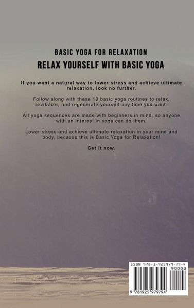 Relax Yourself with Basic Yoga Follow along with these 10 basic yoga routines to relax, revitalize, and regenerate yourself any time you want. All yoga sequences are made with beginners in mind, so anyone with an interest in yoga can do them. Lower stress and achieve ultimate relaxation in your mind and body, because this is Basic Yoga for Relaxation. Get it now. Relaxing with Yoga Made EasySpecifically designed basic yoga sequences to lower stress and relax your entire being Yoga breathing techniques Important safety information about when to avoid certain yoga poses How to do yoga nidra Over 65 basic yoga poses so you can create your own routines ...and more! Not Only Yoga for Stress Relief and Relaxation Achieve total relaxation and get all the other benefits of yoga.Increase strength Lose weight Reduce stress Calm the mind Revitalize yourself Sleep better Improve flexibility Be happier ... just to name a few. Limited Time Only... Get your copy of Basic Yoga for Relaxation today and you will also receive:Free SF Nonfiction Books new releases Exclusive discount offers Downloadable sample chapters Bonus content ... and more! Eliminate your stress the natural way, because these 10 basic yoga routines are all you need. Get it now.