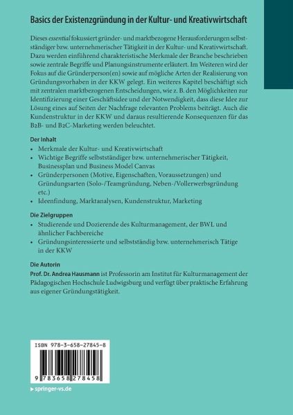 Dieses essential fokussiert gründer- und marktbezogene Herausforderungen selbstständiger bzw. unternehmerischer Tätigkeit in der Kultur- und Kreativwirtschaft. Dazu werden einführend charakteristische Merkmale der Branche beschrieben sowie zentrale Begriffe und Planungsinstrumente erläutert. Im Weiteren wird der Fokus auf die Gründerperson(en) sowie auf mögliche Arten der Realisierung von Gründungsvorhaben in der KKW gelegt. Ein weiteres Kapitel beschäftigt sich mit zentralen marktbezogenen Entscheidungen, wie z. B. den Möglichkeiten zur Identifizierung einer Geschäftsidee und der Notwendigkeit, dass diese Idee zur Lösung eines auf Seiten der Nachfrage relevanten Problems beiträgt. Auch die Kundenstruktur in der KKW und daraus resultierende Konsequenzen für das B2B- und B2C-Marketing werden beleuchtet.