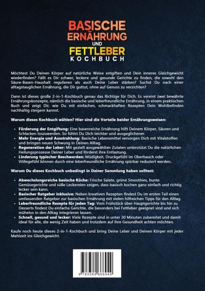 Möchtest Du Deinen Körper auf natürliche Weise entgiften und Dein inneres Gleichgewicht wiederfinden? Fällt es Dir schwer, leckere und gesunde Gerichte zu finden, die sowohl den Säure-Basen-Haushalt regulieren als auch Deine Leber stärken? Suchst Du nach einer alltagstauglichen Ernährung, die Dir guttut, ohne auf Genuss zu verzichten?Dann ist dieses große 2-in-1-Kochbuch genau das Richtige für Dich. Es vereint zwei bewährte Ernährungskonzepte, nämlich die basische und leberfreundliche Ernährung, in einem praktischen Buch und zeigt Dir, wie Du mit einfachen, schmackhaften Rezepten Dein Wohlbefinden nachhaltig steigern kannst.Warum dieses Kochbuch wählen? Hier sind die Vorteile beider Ernährungsweisen:- Förderung der Entgiftung: Eine basenreiche Ernährung hilft Deinem Körper, Säuren und Schlacken loszuwerden. So fühlst Du Dich leichter und ausgeglichener.- Mehr Energie und Ausstrahlung: Basische Lebensmittel versorgen Dich mit Vitalstoffen und bringen neuen Schwung in Deinen Alltag.- Regeneration der Leber: Mit gezielt ausgewählten Zutaten unterstützt Du die natürlichen Heilungsprozesse Deiner Leber und förderst ihre Entlastung.- Linderung typischer Beschwerden: Müdigkeit, Druckgefühl im Oberbauch oder Völlegefühl können durch eine leberfreundliche Ernährung spürbar reduziert werden.Warum Du dieses Kochbuch unbedingt in Deiner Sammlung haben solltest:- Abwechslungsreiche basische Küche: Frische Salate, grüne Smoothies, bunte Gemüsegerichte und süße Leckereien zeigen, dass basisch kochen ganz einfach und richtig lecker sein kann.- Basischer Ratgeber inklusive: Neben kreativen Rezepten findest Du im ersten Teil einen umfassenden Ratgeber zur basischen Ernährung mit vielen hilfreichen Tipps für den Alltag.- Leberfreundliche Rezepte für jeden Tag: Vom Frühstück über Hauptgerichte bis hin zu Desserts findest Du einfache Gerichte, die besonders bei Fettleber geeignet sind und sich mühelos in den Alltag integrieren lassen.- Schnell, gesund und lecker: Viele Rezepte sind in unter 30 Minuten zubereitet und damit ideal für alle, die wenig Zeit haben und trotzdem auf ihre Gesundheit achten möchten.Kaufe noch heute dieses 2-in-1-Kochbuch und bring Deine Leber und Deinen Körper mit jeder Mahlzeit ins Gleichgewicht.