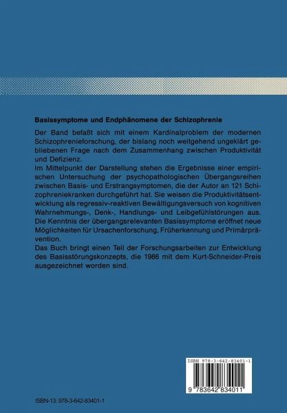 Der Band befaßt sich mit einem Kardinalproblem der modernen Schizophrenieforschung der bislang noch weitgehend ungeklärt gebliebenen Frage nach dem Zusammenhang zwischen Produktivität und Defizienz. Nach einer Rekonstruktion der Entstehungsgeschichte des Problems bis zu seiner heutigen Reaktualisierung durch die angloamerikanische Schizophrenieforschung hin wird ein neuer Ansatz zur empirischen Untersuchung der Zusammenhangsfrage entwickelt. Im Mittelpunkt der Darstellung stehen die Ergebnisse einer empirischen Untersuchung der psychopathologischen Übergangsreihen zwischen Basis- und Erstrangsymptomen, die der Autor an 121 Schizophreniekranken durchgeführt hat. Sie weisen die Produktivitätsentwicklung als regressiv-reaktiven Bewältigungsversuch von kognitiven Wahrnehmungs-, Denk-, Handlungs- und Leibgefühlstörungen aus. Die Kenntnis der übergangsrelevanten Basissymptome eröffnet neue Möglichkeiten für Ursachenforschung, Früherkennung und Primärprävention.