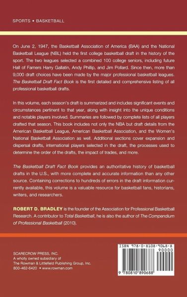 The Basketball Draft Fact Book is the first detailed and comprehensive listing of all professional basketball drafts in the history of the sport since the first draft in 1947. Each season's draft is summarized, noting significant events and circumstances pertinent to that year and providing insight into the unique conditions and notable players involved. Following the summary is a complete list of all players drafted that season. Additional sections cover expansion and dispersal drafts, international players selected in the draft, the processes used to determine the order of the drafts, the impact of trades, and more. Containing corrections to hundreds of errors in the draft information currently available, this volume is a valuable resource for basketball fans, historians, writers, and researchers.