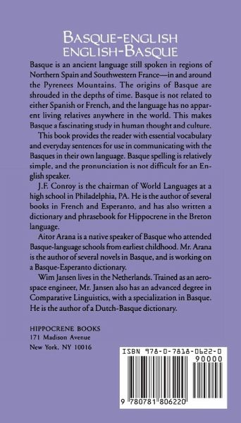 Basque is an ancient language still spoken in regions of northern Spain and southwestern France--in and around the Pyrenees Mountains. This book provides the reader with essential vocabulary and everyday sentences for us in communicating in Basque. This dictionary includes an introduction to the Basque alphabet and pronunciation, an overview of Basque grammar, a 2-way dictionary and a phrasebook.
