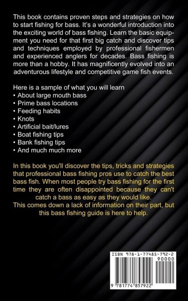 This book contains proven steps and strategies on how to start fishing for bass. It's a wonderful introduction into the exciting world of bass fishing. Learn the basic equipment you need for that first big catch and discover tips and techniques employed by professional fishermen and experienced anglers for decades. Bass fishing is more than a hobby. It has magnificently evolved into an adventurous lifestyle and competitive game fish events. Here is a sample of what you will learnAbout large mouth bass Prime bass locations Feeding habits Knots Artificial bait/lures Boat fishing tips Bank fishing tips And much much more In this book you'll discover the tips, tricks and strategies that professional bass fishing pros use to catch the best bass fish. When most people try bass fishing for the first time they are often disappointed because they can't catch a bass as easy as they would like. This comes down a lack of information on their part, but this bass fishing guide is here to help.
