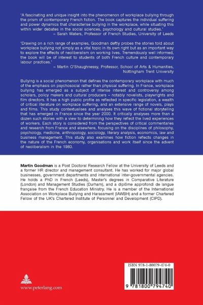 «A fascinating and unique insight into the phenomenon of workplace bullying through the prism of contemporary French fiction. The book captures the individual suffering and power dynamics that characterise bullying in the workplace, while situating this within wider debates in the social sciences, psychology and cultural studies.» (Sarah Waters, Professor of French Studies, University of Leeds)