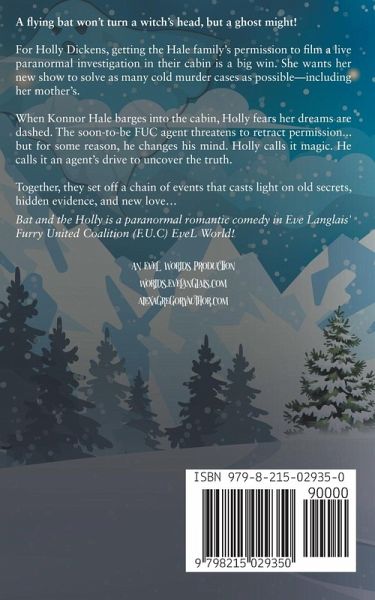 A flying bat won't turn a witch's head, but a ghost might! For Holly Dickens, getting the Hale family's permission to film a live paranormal investigation in their cabin is a big win. She wants her new show to solve as many cold murder cases as possible-including her mother's. The first step? Gain a large audience. The Hale cabin is the perfect location for that. Or so Holly believed. When Konnor Hale barges into the cabin, accusing her of trespassing, Holly knows her dreams are dashed. The soon-to-be FUC agent retracts his family's permission. When Konnor changes his mind, Holly calls it magic. He calls it an agent's drive to uncover the culprit. Together, they return to the cabin and set off a chain of events that casts light on old secrets, hidden evidence, and new love… Bat and the Holly is a paranormal romantic comedy in Eve Langlais' Furry United Coalition (F.U.C) EveL World!