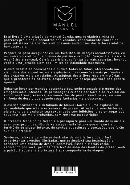 Este livro é uma criação de Manuel García, uma verdadeira mina de prazeres proibidos e encontros apaixonados, especialmente concebida para satisfazer os apetites eróticos mais audaciosos dos leitores adultos homossexuais.Prepare-se para mergulhar em um turbilhão de desejos inconfessáveis, em um universo erótico que queima de paixão e sedução. Graças à sua escrita magnética e sensual, García acaricia suas fantasias mais secretas, levando você a uma jornada além dos limites da intimidade masculina.A obra desafia as convenções e quebra todos os tabus, oferecendo um vislumbre dos encontros mais explosivos, das conexões mais profundas e dos prazeres mais extasiados. As páginas deste livro revelam histórias que o prenderão às palavras, despertando um desejo que você não poderá ignorar.Deixe-se levar por mundos desconhecidos, onde o pecado é o motor das emoções mais intensas. Os personagens criados por García se revelam em encontros transgressores, em momentos de paixão sem limites, em uma sinfonia de desejo que acende suas fantasias mais obscuras.A escrita provocante e detalhada de Manuel García é uma explosão de sensualidade que o fará estremecer de prazer. Através de suas histórias, ele o convida a explorar sua sexualidade sem inibições, a se entregar aos seus instintos mais profundos, sem remorso ou restrições.O presente trabalho de ficção é o passaporte para um mundo de luxúria e aventuras proibidas. Não deixe escapar esta leitura que o levará a um território de prazer intenso, de sonhos audaciosos e sensações que farão sua pele arrepiar.Sente-se, relaxe e permita-se desfrutar de uma leitura que o fará experimentar emoções ilimitadas, que estimulará sua imaginação e acenderá uma chama de desejo indomável. Essas histórias estão esperando por você, prontas para levá-lo além dos limites do prazer, onde a paixão é soberana e o êxtase é sua companheira de viagem.