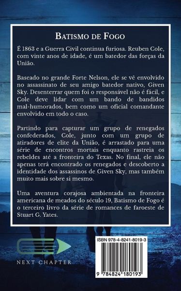 É 1863 e a Guerra Civil continua furiosa. Reuben Cole, com vinte anos de idade, é um batedor das forças da União. Baseado no grande Forte Nelson, ele se vê envolvido no assassinato de seu amigo batedor nativo, Given Sky. Desenterrar quem foi o responsável não é fácil, e Cole deve lidar com um bando de bandidos mal-humorados, bem como um oficial comandante envolvido em todo o caso. Partindo para capturar um grupo de renegados confederados, Cole, junto com um grupo de atiradores de elite da União, é arrastado para uma série de encontros mortais enquanto rastreia os rebeldes até a fronteira do Texas. No final, ele não apenas terá encontrado os renegados e descoberto a identidade dos assassinos de Given Sky, mas também muito mais sobre si mesmo. Uma aventura corajosa ambientada na fronteira americana de meados do século 19, Batismo de Fogo é o terceiro livro da série de romances de faroeste de Stuart G. Yates.
