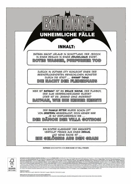 DUNKLE MÄCHTE IN GOTHAMIn fünf übernatürlichen und unheimlichen Storys bekommt es Batman unter anderem mit schottischen Geistern zu tun, er muss den wahnsinnigen Hexenmeister eines Dämonenkults aufhalten und ein mysteriöses Wesen jagen, das durch Gotham Citys dunkelste Gassen schleicht: Swamp Thing. Eine grandiose Sammlung für Fans des 1970er-Jahre-Batman, geschrieben von den prägenden Autoren der Ära Denny O'Neil, Len Wein und Frank Robbins und illustriert von den Starzeichnern Neal Adams, Bernie Wrightson, Irv Novick und Dick Giordano.