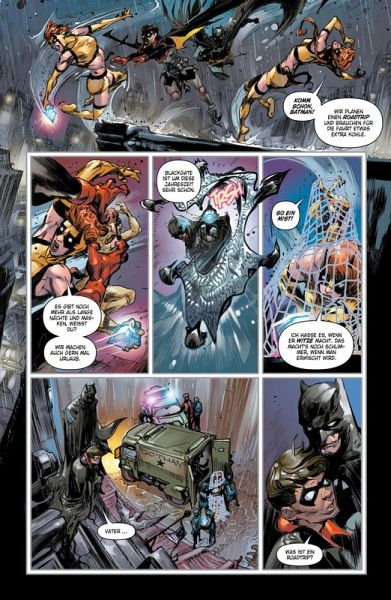 MAN-BAT ÜBERNIMMT GOTHAM CITYBatman und Robin stehen vor neuen Herausforderungen. Denn während ihr Gegner Man-Bat versucht, mit der Schurkin Shush die Herrschaft über Gotham zu übernehmen, gibt es zusätzlich Probleme an Damians Schule und mit seiner Freundin Flatline ...Jetzt muss das Dynamische Duo an mehreren Fronten gleichzeitig kämpfen - eine Belastung für Vater und Sohn, die sich nun blind vertrauen müssen.Neue Abenteuer von Batman und Sohn von Top-Autor Joshua Williamson (Robin, Flash) und den Zeichnern Simone Di Meo (Batman: Urban Legends), Howard Porter (Batman: Shadow War), Juan Ferreyra (Green Arrow Megaband) und anderen.ENTHÄLT: BATMAN AND ROBIN 2024 ANNUAL 1, BATMAN AND ROBIN 7-13