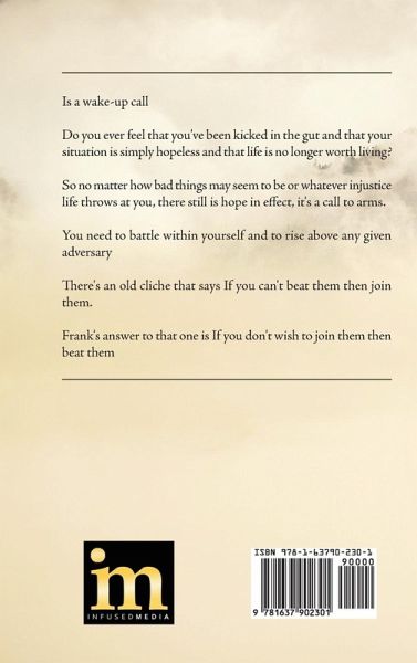 Battered Soul Is a wake-up call. Do you ever feel that you've been kicked in the gut and that your situation is simply hopeless and that life is no longer worth living? So no matter how bad things may seem to be or whatever injustice life throws at you, there still is hope in effect, it's a call to arms. You need to battle within yourself and to rise above any given adversary. There's an old cliche that says If you can't beat them then join them. Frank's answer to that one is If you don't wish to join them then beat them.