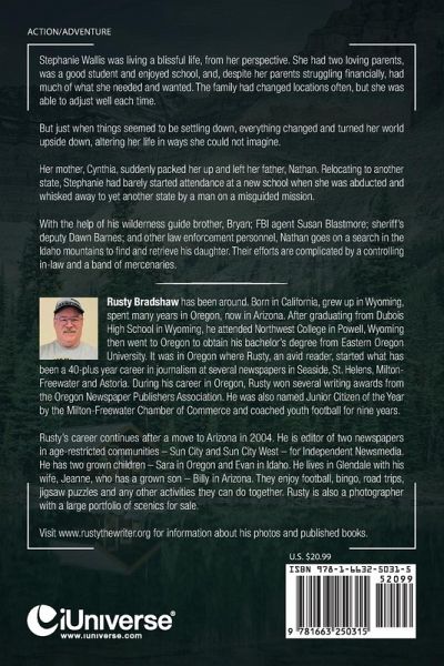 Stephanie Wallis was living a blissful life, from her perspective. She had two loving parents, was a good student and enjoyed school, and, despite her parents struggling financially, had much of what she needed and wanted. The family had changed locations often, but she was able to adjust well each time. But just when things seemed to be settling down, everything changed and turned her world upside down, altering her life in ways she could not imagine. Her mother, Cynthia, suddenly packed her up and left her father, Nathan. Relocating to another state, Stephanie had barely started attendance at a new school when she was abducted and whisked away to yet another state by a man on a misguided mission. With the help of his wilderness guide brother, Bryan; FBI agent Susan Blastmore; sheriff's deputy Dawn Barnes; and other law enforcement personnel, Nathan goes on a search in the Idaho mountains to find and retrieve his daughter. Their efforts are complicated by a controlling in-law and a band of mercenaries.