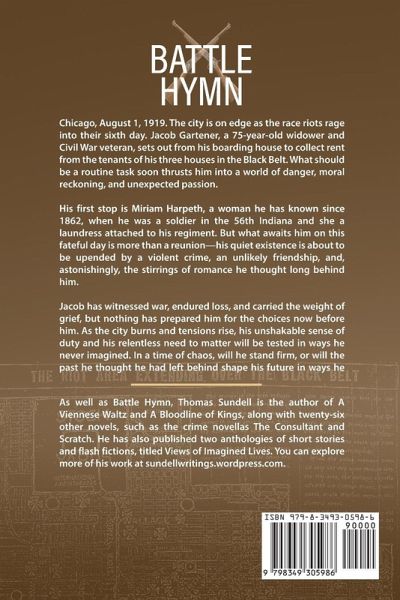 Chicago, August 1, 1919. The city is on edge as the race riots rage into their sixth day. Jacob Gartener, a 75-year-old widower and Civil War veteran, sets out from his boarding house to collect rent from the tenants of his three houses in the Black Belt. What should be a routine task soon thrusts him into a world of danger, moral reckoning, and unexpected passion. His first stop is Miriam Harpeth, a woman he has known since 1862, when he was a soldier in the 56th Indiana and she a laundress attached to his regiment. But what awaits him on this fateful day is more than a reunion-his quiet existence is about to be upended by a violent crime, an unlikely friendship, and, astonishingly, the stirrings of romance he thought long behind him. Jacob has witnessed war, endured loss, and carried the weight of grief, but nothing has prepared him for the choices now before him. As the city burns and tensions rise, his unshakable sense of duty and his relentless need to matter will be tested in ways he never imagined. In a time of chaos, will he stand firm, or will the past he thought he had left behind shape his future in ways he never saw coming?