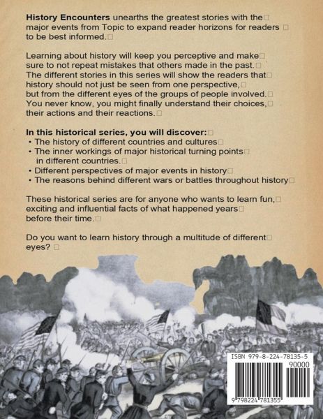 History Encounters unearths the greatest stories with the major events from Battle of Gettysburg to expand reader horizons for readers to be best informed. The Battle that transpired in Gettysburg is one of the most important and gruesome battles during the American Civil War (1861-1865). Gettysburg was the battlefield for the Union, led by Major General George Meade, and the Confederacy, led by General Robert E. Lee. This battle transpired in 1863, and it was a turning point in America's history. Learning about history will keep you perceptive and make sure to not repeat mistakes that others made in the past. The different stories in this series will show the readers that history should not just be seen from one perspective, but from the different eyes of the groups of people involved. You never know, you might finally understand their choices, their actions and their reactions. In this historical series, you will discover:The history of different countries and cultures The inner workings of major historical turning points in different countries. Different perspectives of major events in history The reasons behind different wars or battles throughout history These historical series are for anyone who wants to learn fun, exciting and influential facts of what happened years before their time. Do you want to learn history through a multitude of different eyes? Scroll up and click the "add to cart" button to grab your copy now!