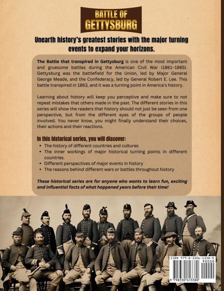 History Encounters unearths the greatest stories with the major events from Battle of Gettysburg to expand reader horizons for readers to be best informed. The Battle that transpired in Gettysburg is one of the most important and gruesome battles during the American Civil War (1861-1865). Gettysburg was the battlefield for the Union, led by Major General George Meade, and the Confederacy, led by General Robert E. Lee. This battle transpired in 1863, and it was a turning point in America's history. Learning about history will keep you perceptive and make sure to not repeat mistakes that others made in the past. The different stories in this series will show the readers that history should not just be seen from one perspective, but from the different eyes of the groups of people involved. You never know, you might finally understand their choices, their actions and their reactions. In this historical series, you will discover:The history of different countries and cultures The inner workings of major historical turning points in different countries. Different perspectives of major events in history The reasons behind different wars or battles throughout history These historical series are for anyone who wants to learn fun, exciting and influential facts of what happened years before their time. Do you want to learn history through a multitude of different eyes? Scroll up and click the "add to cart" button to grab your copy now!