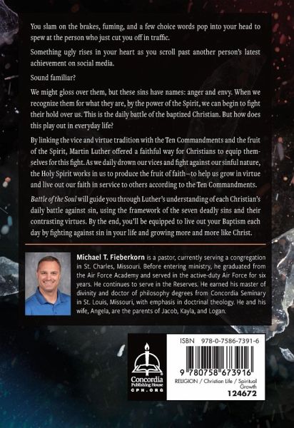 Envy, greed, gluttony, lust, anger, sloth, and pride are all vices and manifestations of unbelief. In Battle of the Soul, author Rev. Dr. Michael T. Fieberkorn explains how daily living of the Ten Commandments kills our unbelief. Redefining the Aristotelian view of vice and virtue from Ethics, Martin Luther transforms their use for Gospel-centered living. Following this transformation, Fieberkorn combines them with the Ten Commandments to show you how you can fight the battle against daily sin, even the ones that seem harmless. Battle of the Soul includes reflection questions after each chapter, prayers to use after finishing the book, and a chart visually showing the connections between vice and virtue. With clear connections between Luther's teachings and our world today, this book will serve you as a how-to guide on living a Gospel-centered life. From the Foreword by Rev. Dr. Joel D. Biermann: "Dr. Fieberkorn revives a rich and deeply rooted tradition within the church: the identification and consideration of the vices and virtues. However, he does this from a Lutheran perspective. Given the commitments and proclivities of these distinct ecclesial traditions, it perhaps goes without saying that bringing them together is no small feat. But Mike has good council and guidance in the endeavor: Luther himself leads the way. . . Through the power of the Holy Spirit, perhaps this book will have the best result of all: one more life closely aligned with the reality of redemption already fully accomplished by Christ."