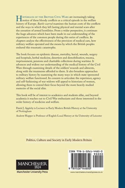 Battle-scarred examines mortality, medical care and military welfare during the British Civil Wars. Its focus on the victims of war and their means of survival provides a series of case studies to demonstrate how these visceral conflicts drove developments in medical care and military welfare for servicemen and their families. -- .