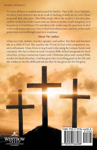 We have all been wounded and scarred by battles. That is life. As a Christian, we don't want others to see us as weak or lacking in faith, so we cover those scars and hide that pain. This Bible study offers the readers a detailed plan on how to heal from life's scars and use them to further God's kingdom. It is focused on 2 Corinthians 12:9 and shows the reader step-by-step how to deal with weaknesses and scars, how to heal from those scars, and how to let God's power rest on you through your own weakness.