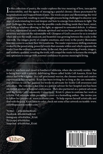 In this collection of poetry, the reader explores the true meaning of love, inescapable vulnerability, and the agony of managing a painful chronic illness punctuated by hospitalizations and frequent bouts of pain. The words are pure and illuminating; the vivid imagery is powerful, resulting in ones thought process being challenged to discover new ways of understanding love and despair and how to emerge from darkness to light. The poet challenges the reader to view the possible cracks dwelling inside their heart, mind, and body as windows allowing in the light, as opposed to unwanted defects. A reliance on God, represented as ones ultimate spiritual and secure base, provides the hope to persevere and nourish the indomitable will. Glimpses of Gods concern for us is revealed when one sees the small, innocent, and beautiful rose growing between the cracks in the sidewalk. The images, purity of complex emotions, and irony in the poetry illuminates how one comes to see how their life transforms. The reader experiences shifting emotions evoked by the penetrating, powerful words that resonate within and which separates the reader from the ordinary, current reality. In the end, the poets weaving of words, imagery, and aesthetic qualities, revealing the truth, will compel the reader to harness the strength and optimism to emerge with renewed confidence to pursue meaningful living.