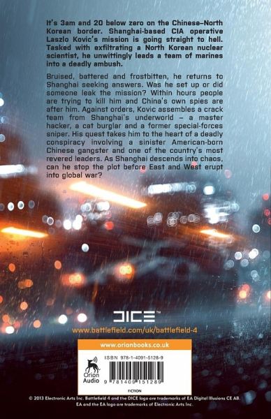 It's 3am and 20 below zero on the Chinese-North Korean border. Shanghai-based CIA operative Laszlo Kovic's mission is going straight to hell. Tasked with exfiltrating a North Korean nuclear scientist, he unwittingly leads a team of Marines into a deadly ambush. Bruised, battered and frostbitten, he returns to Shanghai seeking answers. Was he set up or did someone leak the mission? Within hours people are trying to kill him and China's own spies are after him. Against orders, Kovic assembles a crack team from Shanghai's underworld - a master hacker, a cat burglar and a former special-forces sniper. His quest takes him to the heart of a deadly conspiracy involving a sinister American-born Chinese gangster and one of the country's most revered leaders. As Shanghai descends into chaos, can he stop the plot before East and West erupt into a global war?The explosive, action-packed prequel to EA's mega-selling video game, BATTLEFIELD 4.