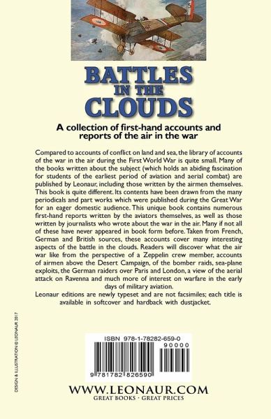 A collection of first-hand accounts and reports of the air in the war Compared to accounts of conflict on land and sea, the library of accounts of the war in the air during the First World War is quite small. Many of the books written about the subject (which holds an abiding fascination for students of the earliest period of aviation and aerial combat) are published by Leonaur, including those written by the airmen themselves. This book is quite different. Its contents have been drawn from the many periodicals and part works which were published during the Great War for an eager domestic audience. This unique book contains numerous first-hand reports written by the aviators themselves, as well as those written by journalists who wrote about the war in the air. Many if not all of these have never appeared in book form before. Taken from French, German and British sources, these accounts cover many interesting aspects of the battle in the clouds. Readers will discover what the air war like from the perspective of a Zeppelin crew member, accounts of airmen above the Desert Campaign, of the bomber raids, sea-plane exploits, the German raiders over Paris and London, a view of the aerial attack on Ravenna and much more of interest on warfare in the early days of military aviation. Illustrated. Leonaur editions are newly typeset and are not facsimiles; each title is available in softcover and hardback with dustjacket.