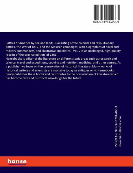 Battles of America by sea and land: - Consisting of the colonial and revolutionary battles, the War of 1812, and the Mexican campaigns; with biographies of naval and military commanders, and illustrative anecdotes - Vol. 2 is an unchanged, high-quality reprint of the original edition of 1861.