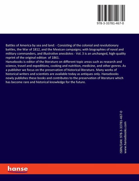 Battles of America by sea and land: - Consisting of the colonial and revolutionary battles, the War of 1812, and the Mexican campaigns; with biographies of naval and military commanders, and illustrative anecdotes - Vol. 3 is an unchanged, high-quality reprint of the original edition of 1861.