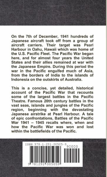 On the 7th of December, 1941 hundreds of Japanese aircraft took off from a group of aircraft carriers. Their target was Pearl Harbour in Oahu, Hawaii which was home of the U.S. Pacific Fleet. The Pacific War began here, and for almost four years the United States and their allies remained at war with the Japanese Empire. During this period the war in the Pacific engulfed much of Asia, from the borders of India to the islands of Indonesia on the outskirts of Australia. This is a concise, yet detailed, historical account of the Pacific War that recounts some of the largest battles in the Pacific Theatre. Famous 20th century battles in the vast seas, islands and jungles of the Pacific region, beginning with the devastating Japanese airstrike at Pearl Harbour. A tale of epic confrontations, Battles of the Pacific War 1941 - 1945 recalls where, when and how the Pacific War was won and lost within the battlefields of the Pacific.