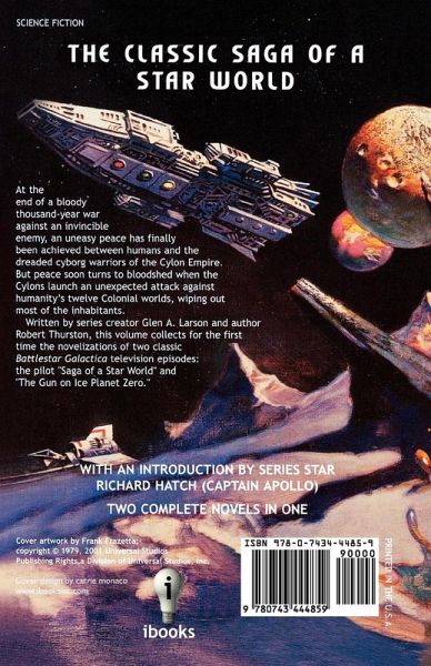 At the end of a bloody thousand-year war against an invincible enemy, an uneasy peace has finally been achieved between humans and the dreaded cyborg warriors of the Cylon Empire. But peace soon turns to bloodshed when the Cylons launch an unexpected attack against humanity's twelve Colonial worlds, wiping out most of the inhabitants. Written by series creator Glen A. Larson and author Robert Thurston, this volume collects for the first time the novelizations of two classic Battlestar Galactica television episodes: the pilot "Saga of a Star World" and "The Gun on Ice Planet Zero."