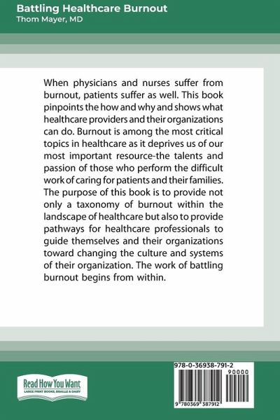 When physicians and nurses suffer from burnout, patients suffer as well. This book pinpoints the how and why and shows what healthcare providers and their organizations can do. Burnout is among the most critical topics in healthcare as it deprives us of our most important resource-the talents and passion of those who perform the difficult work of caring for patients and their families. The purpose of this book is to provide not only a taxonomy of burnout within the landscape of healthcare but also to provide pathways for healthcare professionals to guide themselves and their organizations toward changing the culture and systems of their organization. The work of battling burnout begins from within. Thom Mayer views every healthcare team member as both a leader and performance athlete, engaged in a cycle of performance, training, and recovery. In these roles, they must both lead and protect themselves and their teams. Battling Healthcare Burnout looks at individuals' role in promoting change within themselves and their organization and addresses solutions to change the culture and systems of work. Both are presented with a pragmatic focusand a liberal use of examples and case studies, including those from several nationally recognized healthcare systems.
