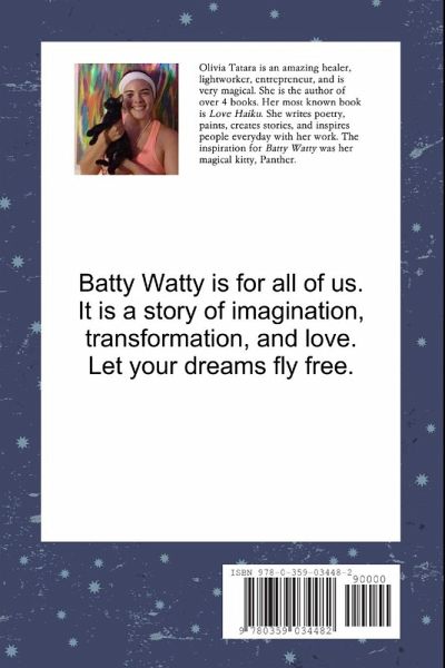 Batty Watty is children's story for all ages. It teaches you to use your imagination to change your reality. Nothing is as it seems and sometimes you find love in the most unexpected places. Allow your dreams to come to life and watch your reality change before your very eyes. This story is about love and true self transformation. Batty Watty is in all of us.