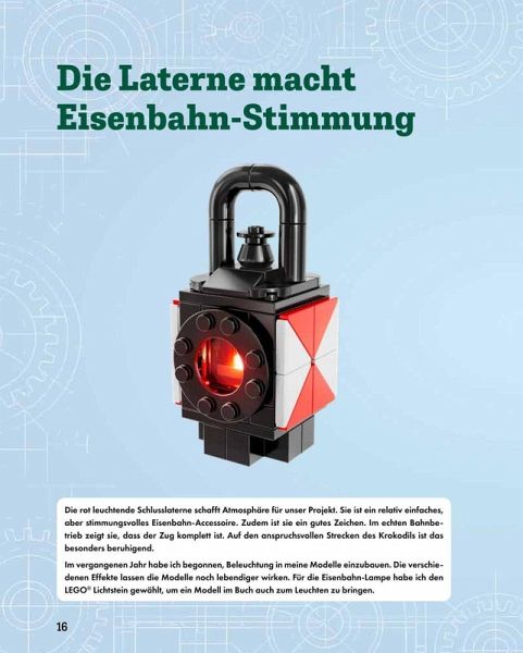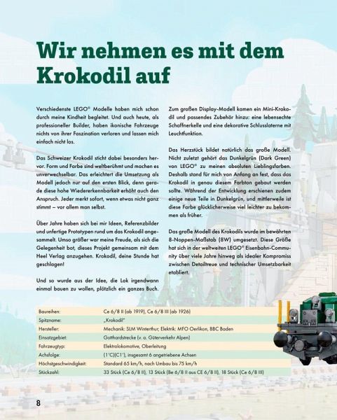 Dieses Buch bietet einen einzigartigen Blick auf Eisenbahnen im LEGO® Stein-Format. Der Autor stellt detaillierte Bauanleitungen für ikonische Lokomotiven wie das Schweizer Krokodil Ce 6/8 II vor, die mit höchster Präzision und Kreativität umgesetzt wurden. Schritt-für-Schritt-Anleitungen machen das Nachbauen auch für Einsteiger zugänglich. Neben Mini-Modellen wie der klassischen BR 03, einer Eisenbahnlaterne und einer Schaffnerkelle enthält das Buch hochwertige, gerenderte Darstellungen, die die Modelle eindrucksvoll präsentieren. Ein Muss für Modellbau-Enthusiasten, Eisenbahnfans und Klemmbaustein-Liebhaber, die auf der Suche nach neuen Herausforderungen und Inspiration sind.
