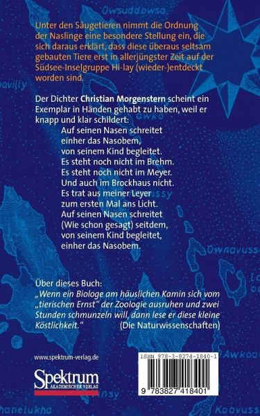 Unter den Säugetieren nimmt die Ordnung der Naslinge eine besondere Stellung ein, die sich daraus erklärt, daß diese überaus seltsam gebauten Tiere erst in allerjüngster Zeit auf der Südsee-Inselgruppe Hi-Iay (wieder-)entdeckt worden sind. Der Dichter CHRISTIAN MORGENSTERN scheint ein Exemplar in Händen gehabt zu haben, weil er knapp und klar schildert:Auf seinen Nasen schreiteteinher das Nasobem,von seinem Kind begleitet.Es steht noch nicht im Brehm.Es steht noch nicht im Meyer.Und auch im Brockhaus nicht.Es trat aus meiner Leyerzum erstenmal ans Licht.Auf seinen Nasen schreitet(Wie schon gesagt) seitdem,von seinem Kind begleitet,einher das Nasobem.