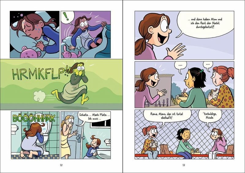 Bäh! Plötzlich sind sie immer wieder da: die Bauchschmerzen und die Übelkeit. Wenn Raina einen Vortrag halten soll, schlechte Noten bekommt - und jedes Mal, wenn sie sich Sorgen macht. Raina schränkt ihr Leben mehr und mehr ein - Hauptsache, ihr wird nicht schlecht. Bis sie erkennt: Es ist wichtig, sich helfen zu lassen und über seine Ängste zu sprechen. Dann ist es mitunter sogar möglich, sie zu überwinden!